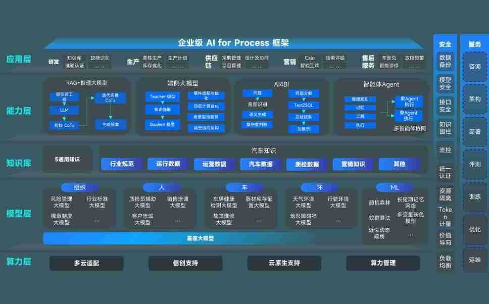 橘子平台问学智车解决方案是一套基于AI技术的汽车行业智能化系统,,覆盖从底层算力到顶层AI应用的全栈方案。。。。方案由算力层、、、模型层和应用层组成:算力层,,,,方案支持多种一体机配置,,,具备云端灵活部署、、、、多云适配以及动态优化计算资源的能力;模型层,,,橘子平台问学平台版提供了企业级AI应用一站式构建与管理平台,,支持基于后训练强化技术的汽车企业专属模型的训练、、评测和运营;应用层,,橘子平台问学DeepSeek版提供包括超级员工、、智能招采、、、、智能营销、、、智能客服、、、、AI for BI等一系列解决方案,,,,可助力汽车行业实现数字化转型,,让管理更智能、、响应更敏捷。。